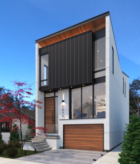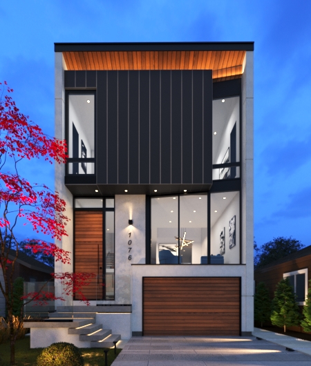 Challenged by the intricacies and opportunities of a small site in downtown Toronto, Studio Quadrant came up with a clever narrow house design for project 158 Fifth St. Concrete,glass and stone are the main materials employed for the exterior finishes.